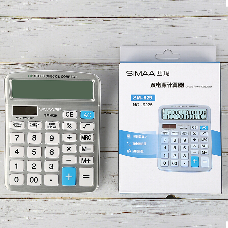西玛(SIMAA)12位宽屏双电源桌面计算器 财务商务办公计算机大按键 办公用品 银白色SM-829