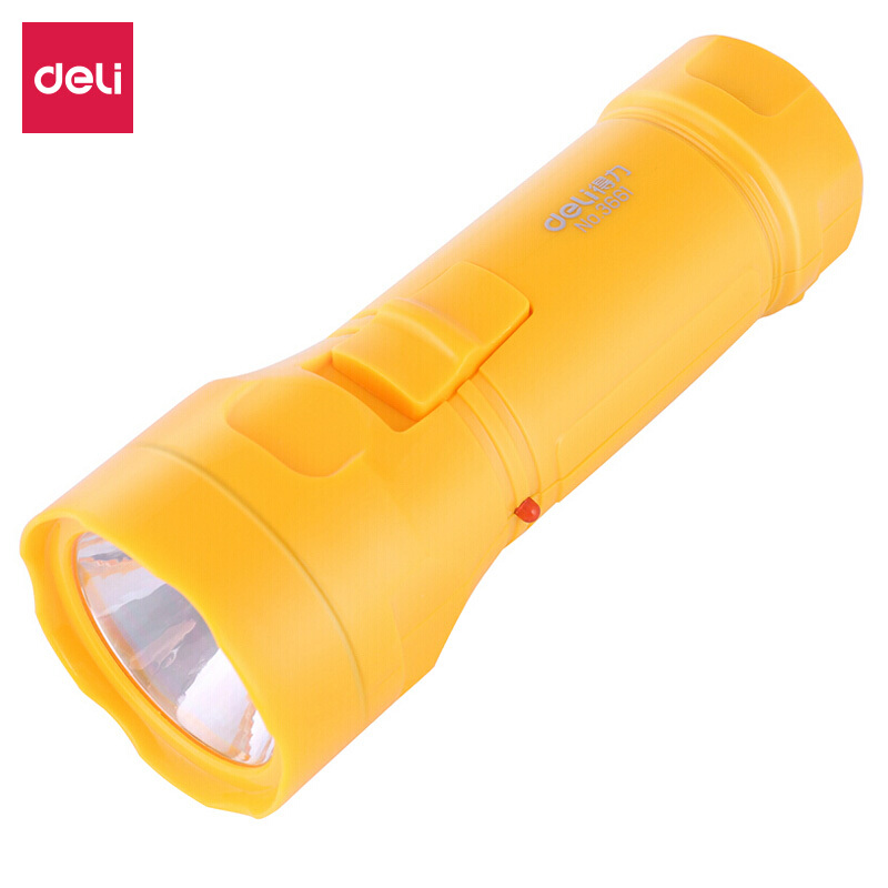 • 得力3661 充电式LED可调光手电筒 户外家用手电筒 橙黄色