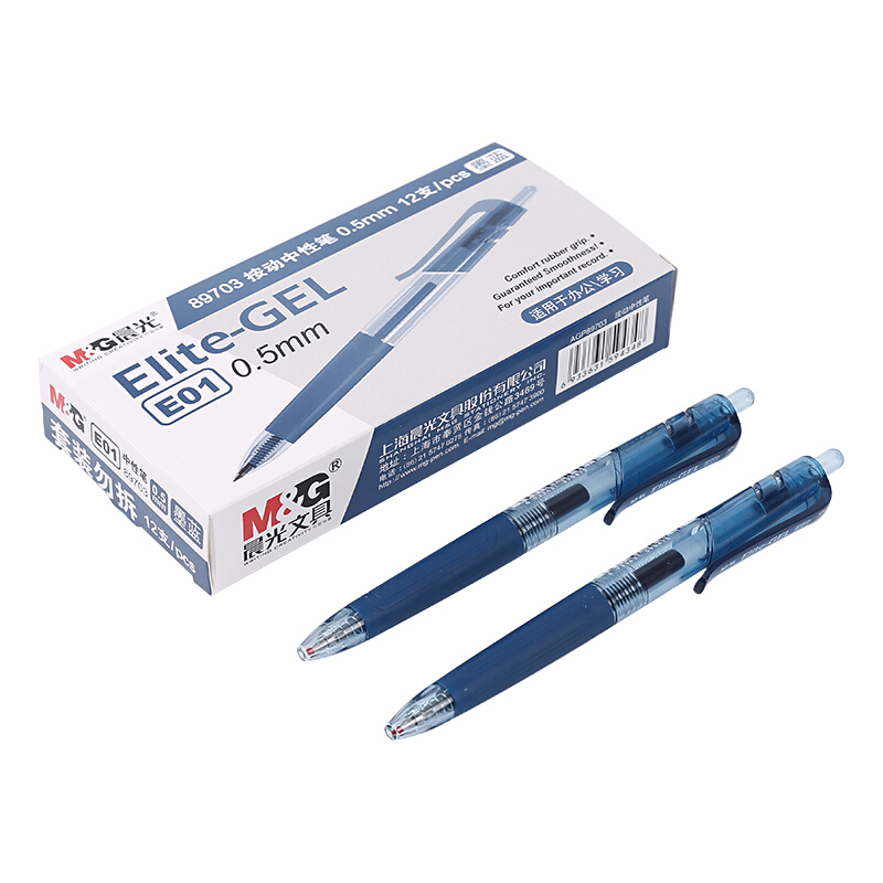 晨光AGP89703 0.5mm墨蓝色中性笔 精英系列E01签字笔 按动子弹头水笔 12支/盒