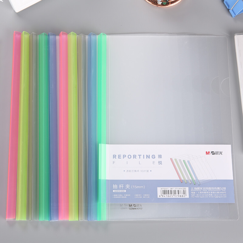 • 晨光 ADMN4202文具10个装A4/15mm透明彩色抽杆夹 办公报告夹拉杆夹 雅悦系列资料整理收纳文件夹