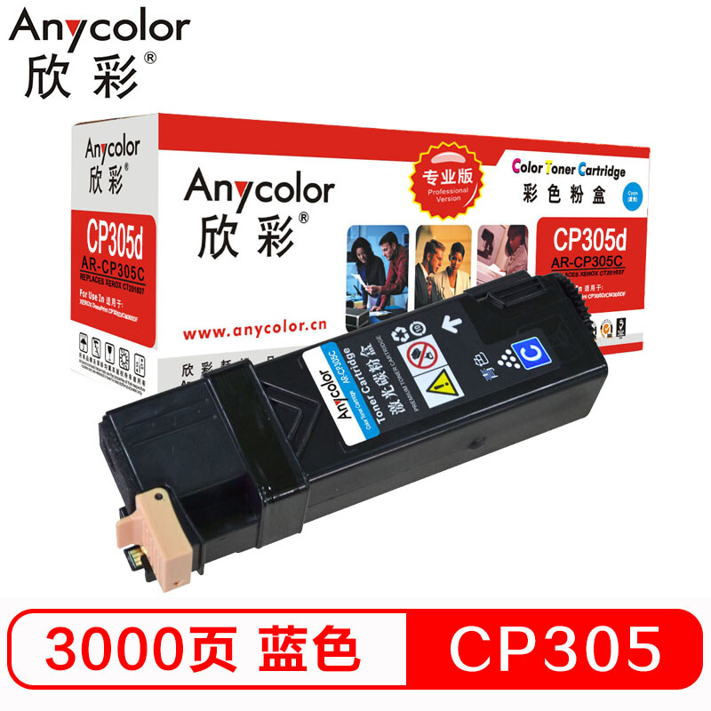 • 欣彩 CP305d 蓝色粉盒(专业版)AR-CP305C 适用施乐 Xerox CT201637 CP305D 墨粉筒 耗材