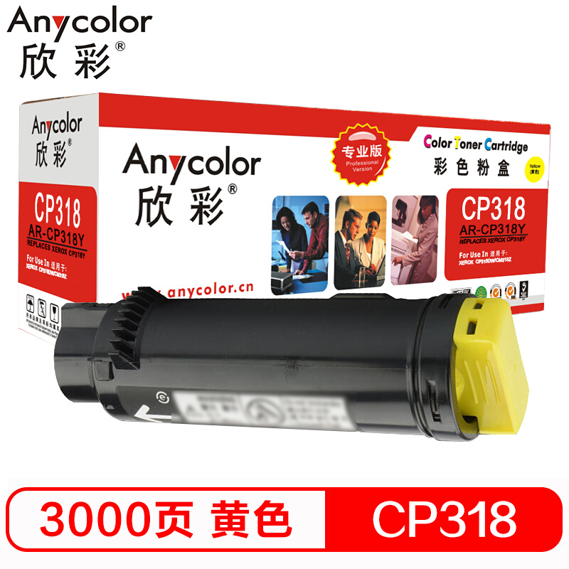 欣彩(Anycolor)CP318粉盒(专业版)AR-CP318Y黄色 适用施乐 CP318DW CM318Z CT202616 墨粉筒 碳粉 耗材