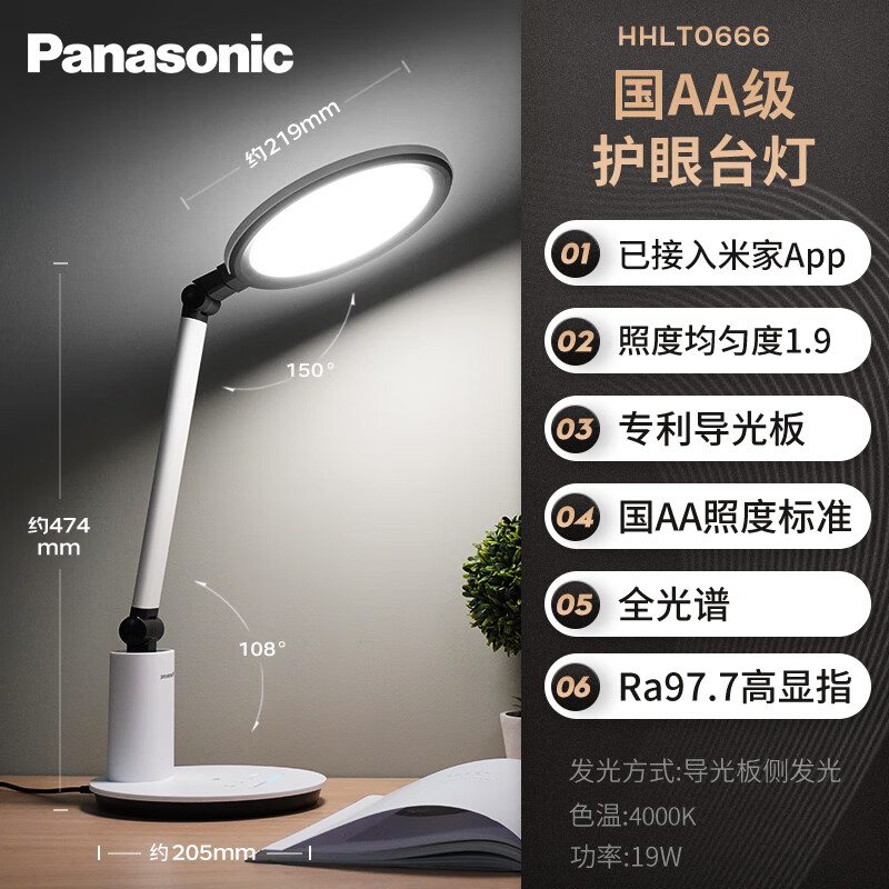 松下(Panasonic)台灯导光板国AA级护眼台灯全光谱儿童 家用智能台灯护眼学习 HHL T0666