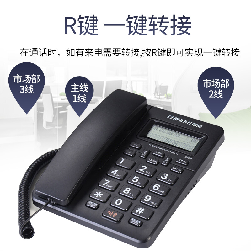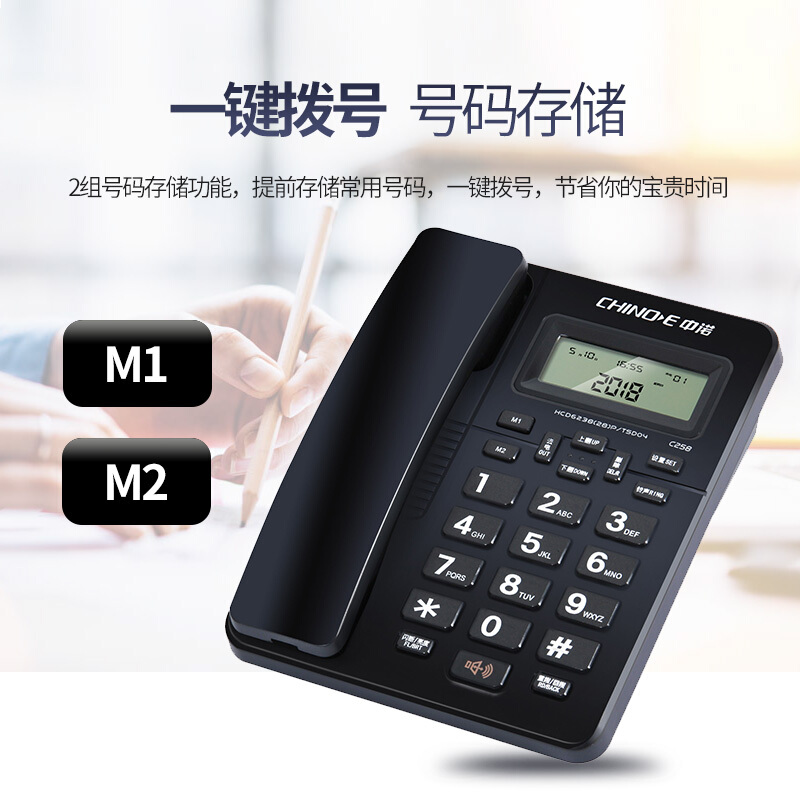中诺 电话机 座机 固定 电话 有线 来电显示 一键拨号 双接口 免电池 C258黑色