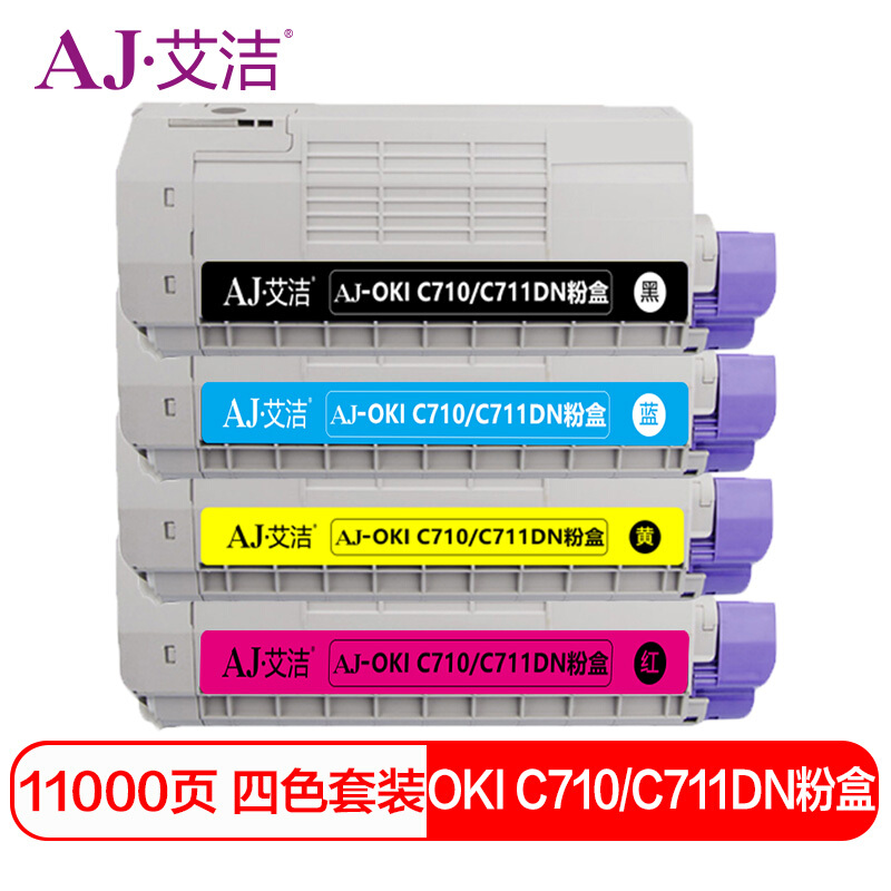 艾洁 C710/C711DN粉盒四色套装商务版 黑蓝黄红 适用OKI C710 OKI C711N C711DN墨粉盒