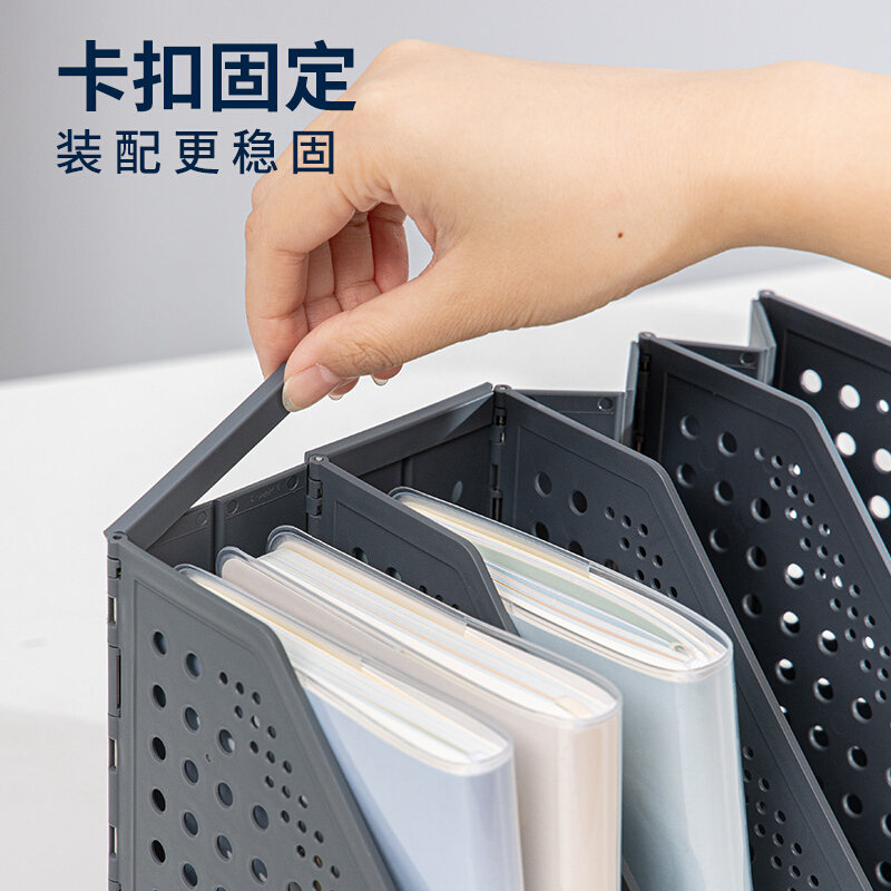 • 得力折叠框文件框多层办公置物架立式文件资料架 四栏(浅灰色)-79004