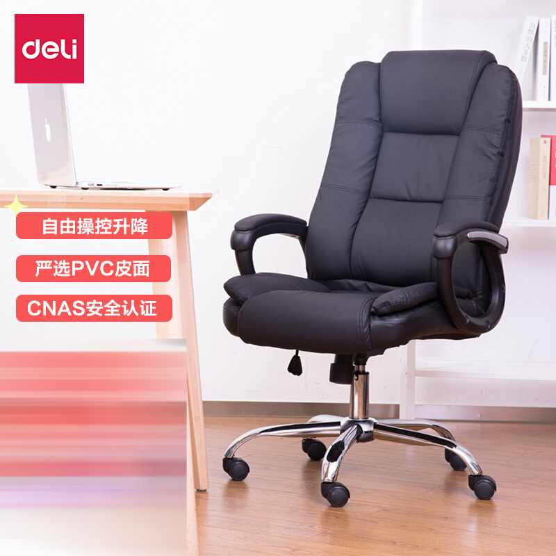 • 得力(deli)4913 电脑椅 家用办公椅 转椅人体工学皮椅子 时尚升降座椅 老板椅