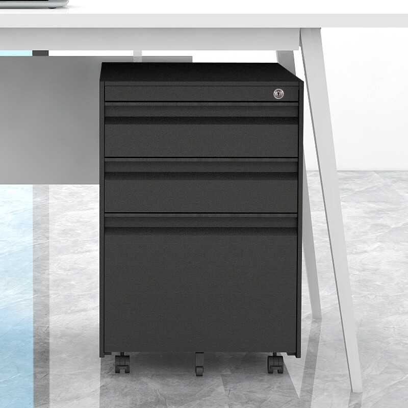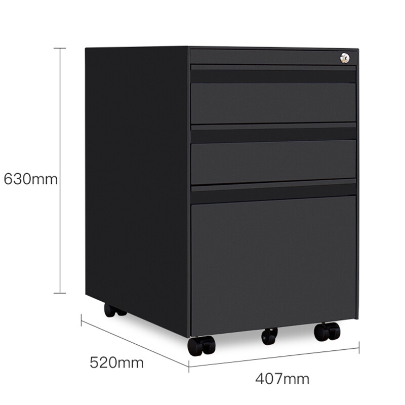 • 钢制文件活动柜三抽屉柜储物矮柜移动柜子鹅颈密码锁白/黑色630宽407深520