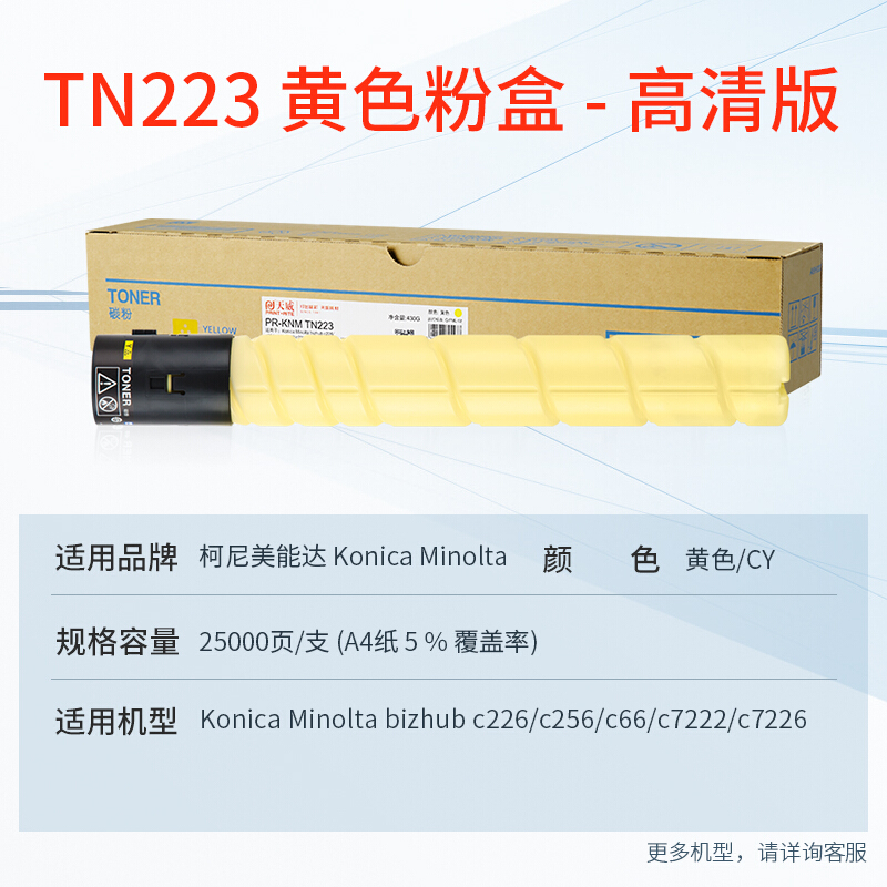 • 天威 适用美能达c226粉盒 tn223黄色大容量碳粉 柯尼卡美能达Bizhub C266 C256墨粉盒C7222 C7226复印机硒鼓