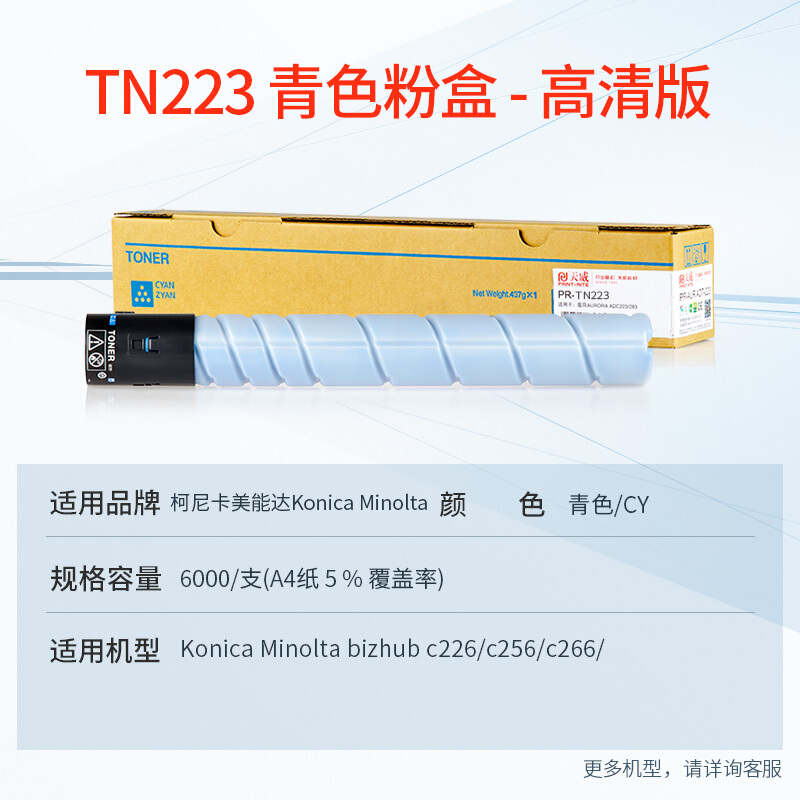 天威 适用美能达c226粉盒 tn223青色碳粉 柯尼卡美能达Bizhub C266 C256墨粉盒C7222 C7226复印机硒鼓