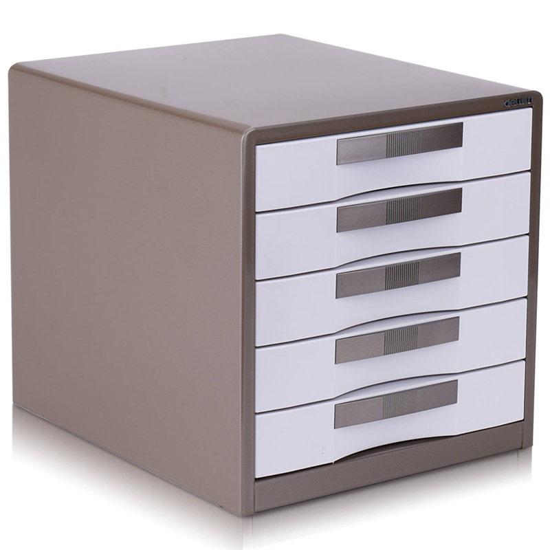 • 得力(deli) 桌面资料整理文件柜 五层带锁塑料抽屉柜 四层硬塑文件盒收纳柜 金属5层文件柜(棕色)9702