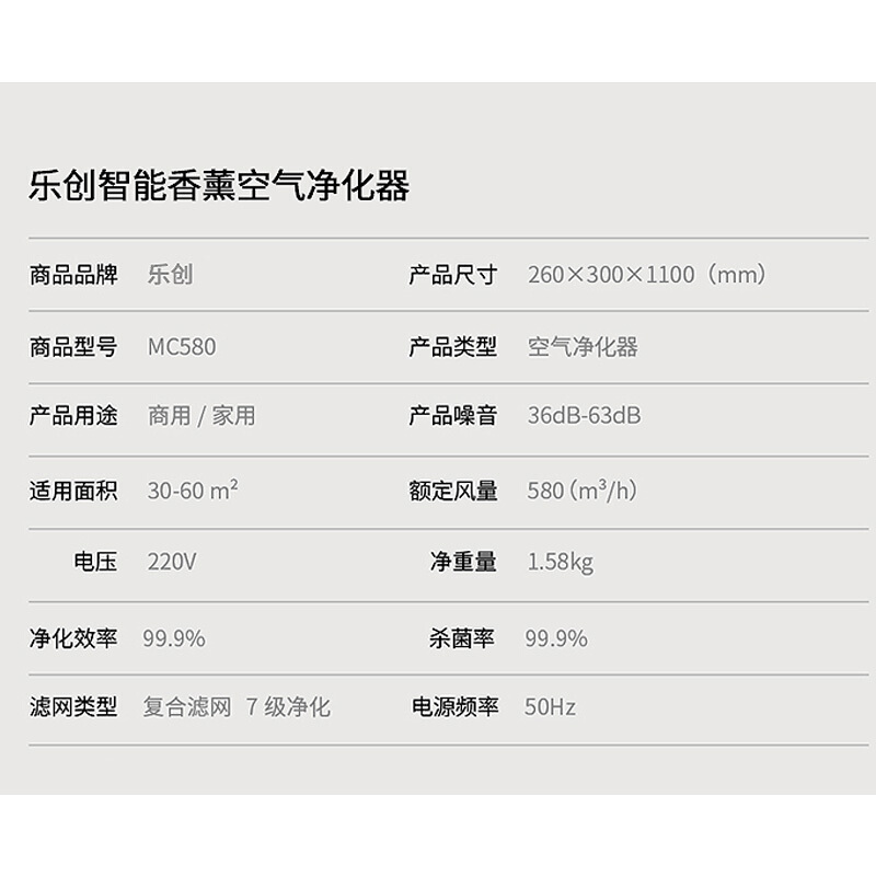 • 乐创(lecon)智能空气净化器家用商用办公室工厂空气净化器系统 MC580