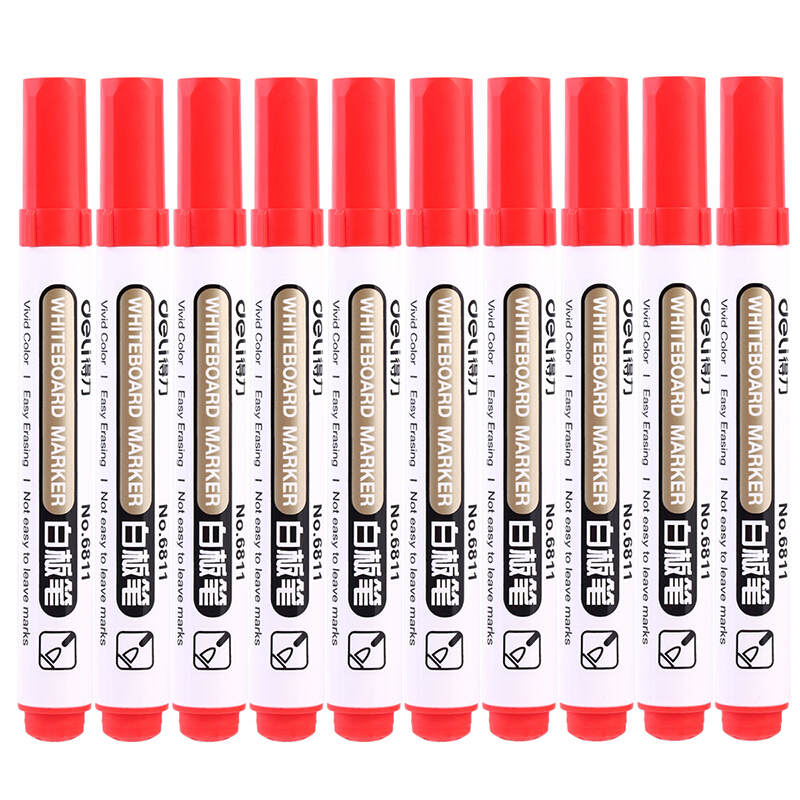 得力 6811 办公会议白板笔 可擦易擦红色 10支/盒