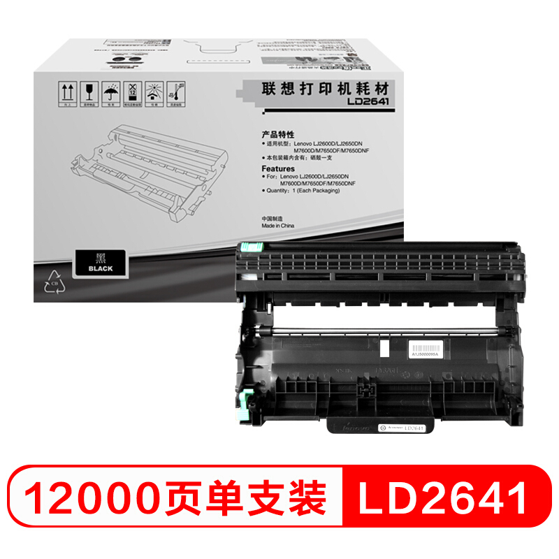- 联想(Lenovo)LD2641黑色硒鼓(适用LJ2600D LJ2650DN M7600D M7650DF M7650DNF)约12000页