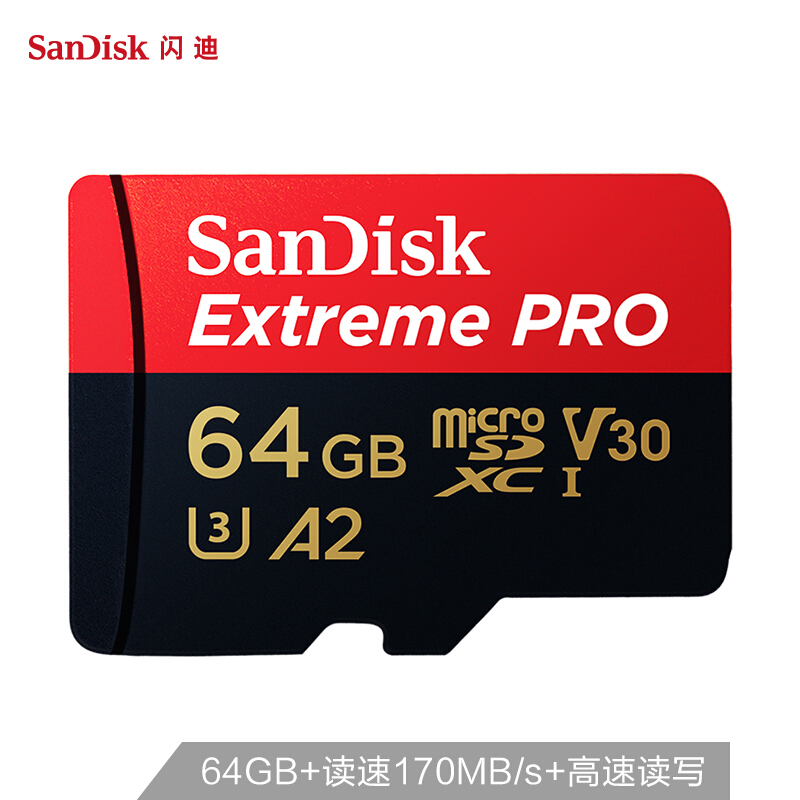 闪迪(SanDisk)64GB TF(MicroSD)存储卡 U3 C10 A2 V30 4K 至尊超极速移动版 读速170MB/s 写速90MB/s