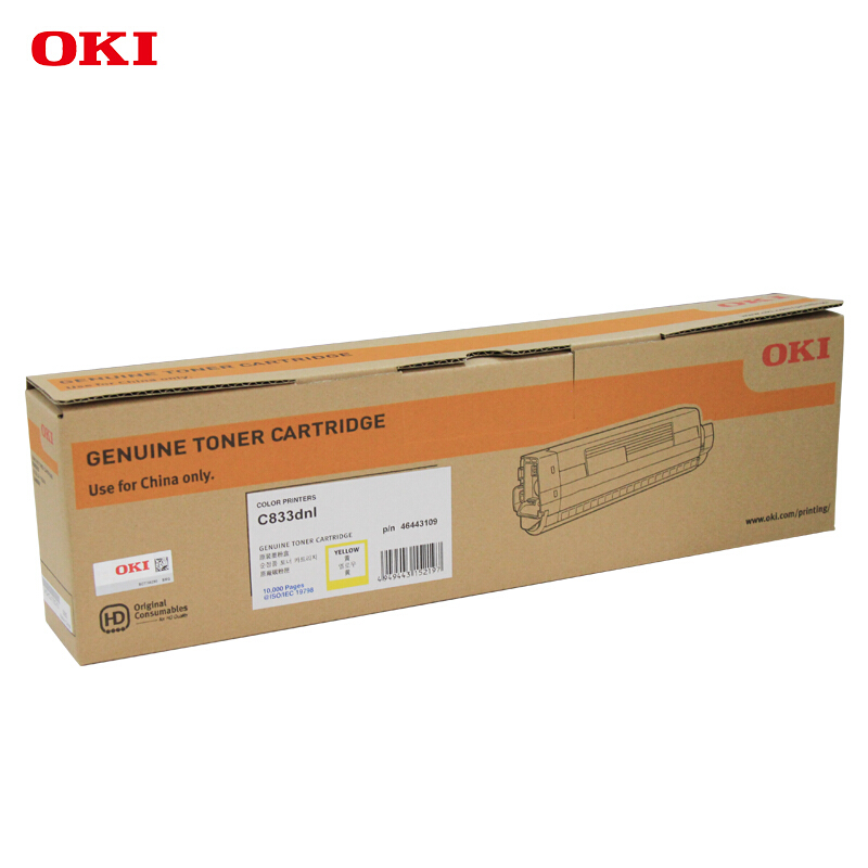 OKI C833dnl 黄色墨粉粉仓碳粉粉盒 打印机耗材10000页货号46443109