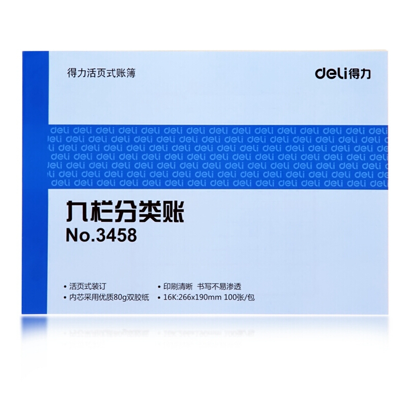 得力(deli)现金日记账本银行存款日记账财务明细账总分类账实物出入会计账簿 16K活页式九栏分类账 3458