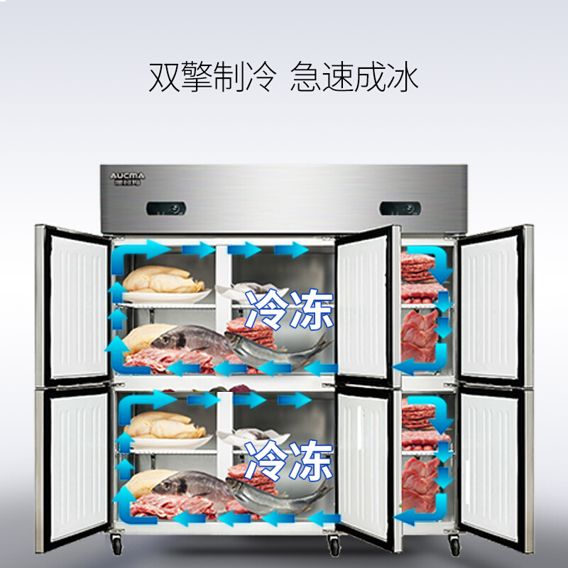 • 澳柯玛VF-1300D6 立式全冷冻冰柜 1300升商用六门厨房冰箱 不锈钢