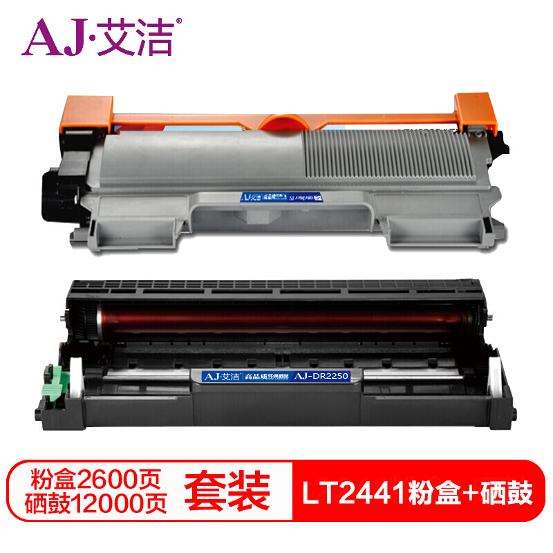 艾洁 LT2441/LT2641粉盒+LD2441/LD2641硒鼓加黑套装 适用兄弟 HL-DCP7060D;DCP7065DN 联想 LJ2400;2600D