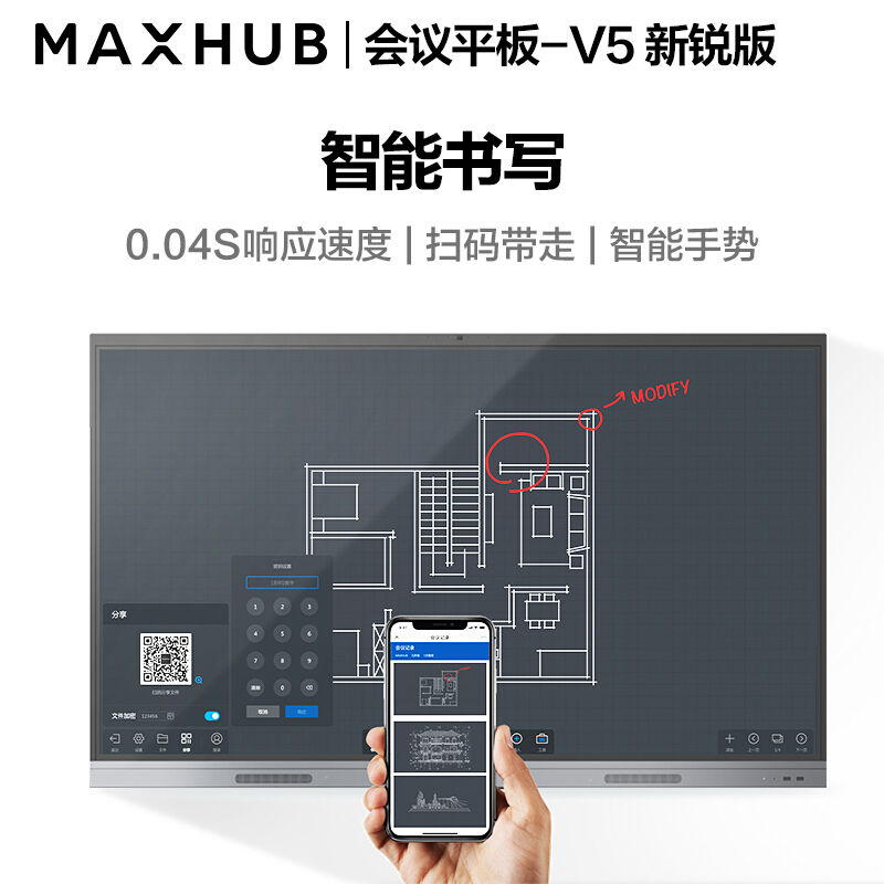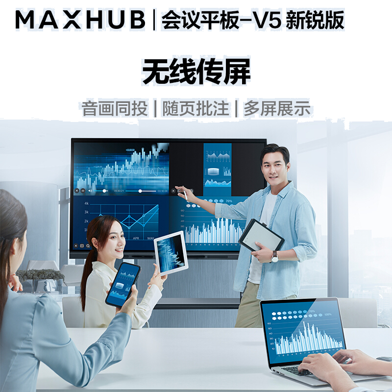MAXHUB视频会议大屏解决方案65英寸会议平板4件套装 教学企业智慧屏办公一体机(EC65CAB+传屏器+智能笔+支架)