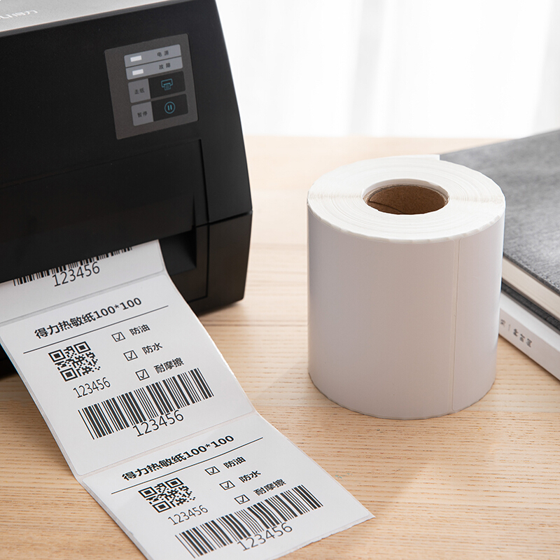 得力(deli)100*100mm三防热敏标签打印纸电子面单不干胶打印纸500张*1卷12001