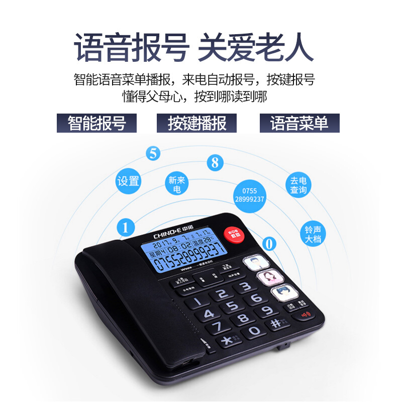 • 中诺 来电报号 电话机 座机 固定 电话 有绳 板机 老人一键SOS 大屏 一键拨号 W568黑色