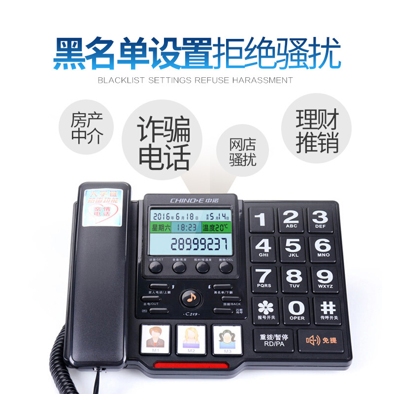 • 中诺(CHINO-E)电话机座机 固定电话 办公家用 一键拨号 来电报号 老人机 C219黑色