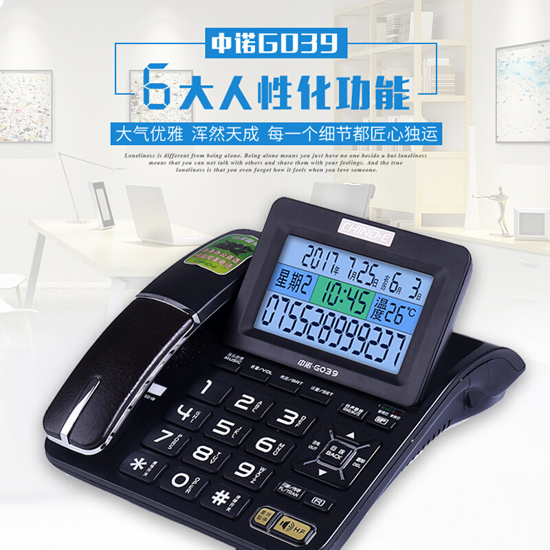 中诺(CHINO-E)G039 大屏幕来电显示电话机/家用座机/办公座机 (黑色)