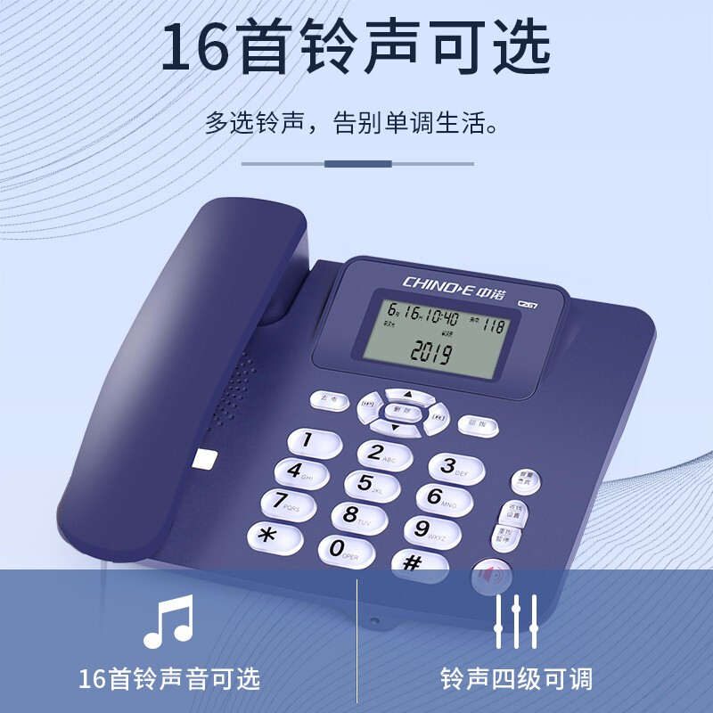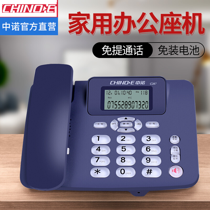 中诺(CHINO-E)C267座机电话机家用商用办公带免提通话来电显示免电池 蓝色