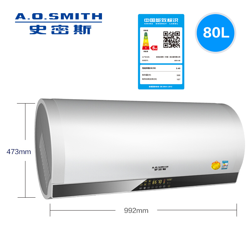 • 史密斯(A.O.Smith) 80升空气能电热水器 金圭内胆 带除湿 AEH-80家电