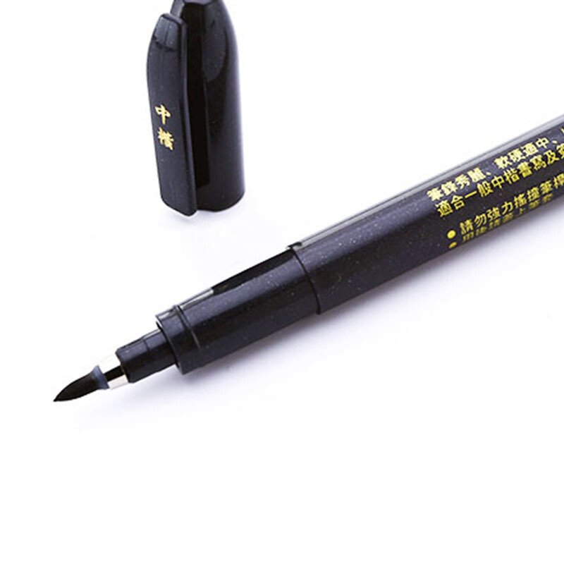 斑马牌(ZEBRA)中楷 学生毛笔练字笔 书法笔请柬笔 WF3 黑色笔杆