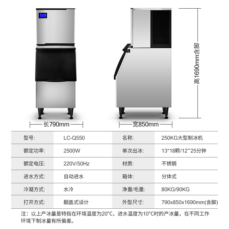 - 乐创(lecon) 制冰机商用 奶茶店大型制冰机全自动吧台ktv冰块机300KG(单次出冰14*18颗)Q550