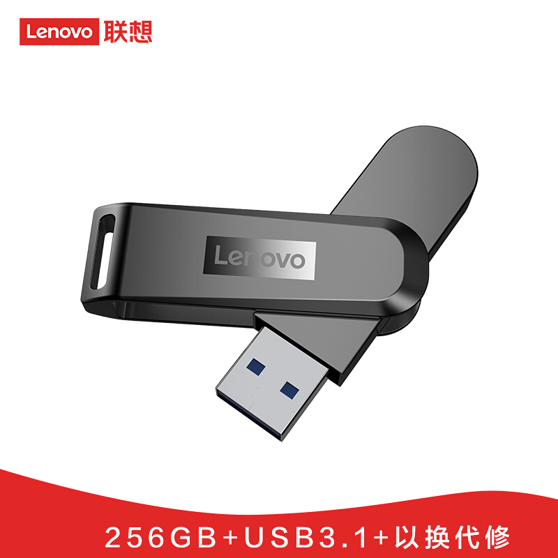 • 联想256GB USB3.0(USB3.1 Gen1) U盘 X3 深空黑 全金属电脑车载高速优盘 360度旋转