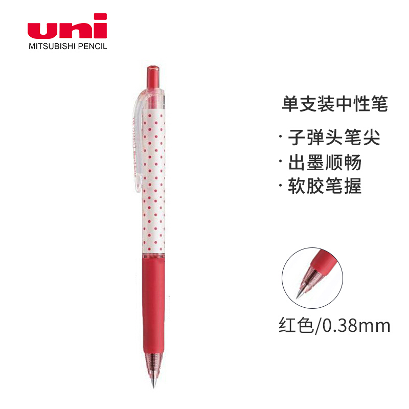 • 三菱(Uni)UMN-138S彩色中性笔 0.38mm按动双珠啫喱笔财务用耐水耐光(替芯UMR-83)红色