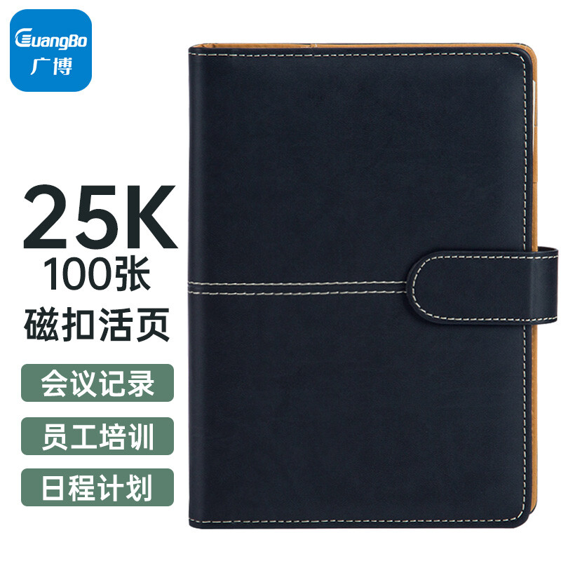 广博(GuangBo)25K活页笔记本子皮面本100张 黑色GBP8605