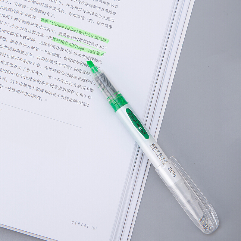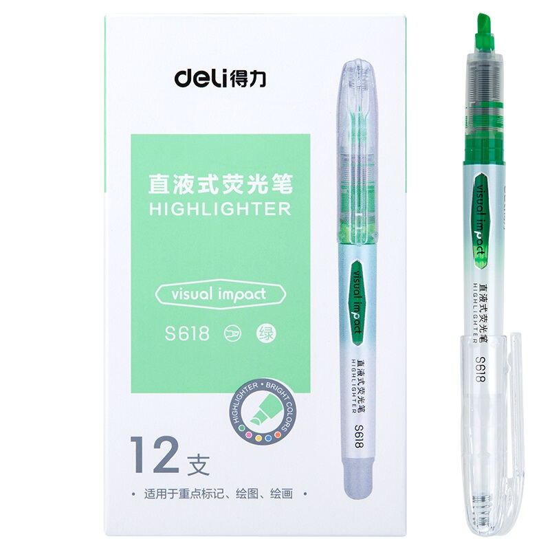 得力S618 绿色 直液荧光笔 重点标记 手帐可用水性记号笔 大包装 36支装