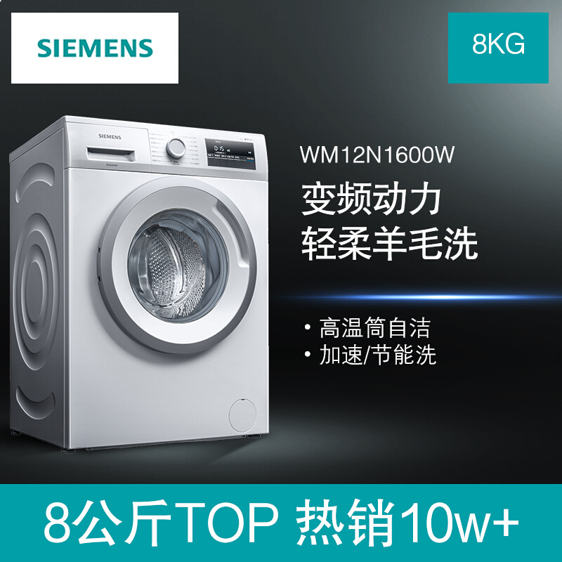 • 西门子XQG80-WM12N1600W/8公斤 变频滚筒洗衣机 除菌液 防过敏程序 快洗15‘ 高温筒清洁