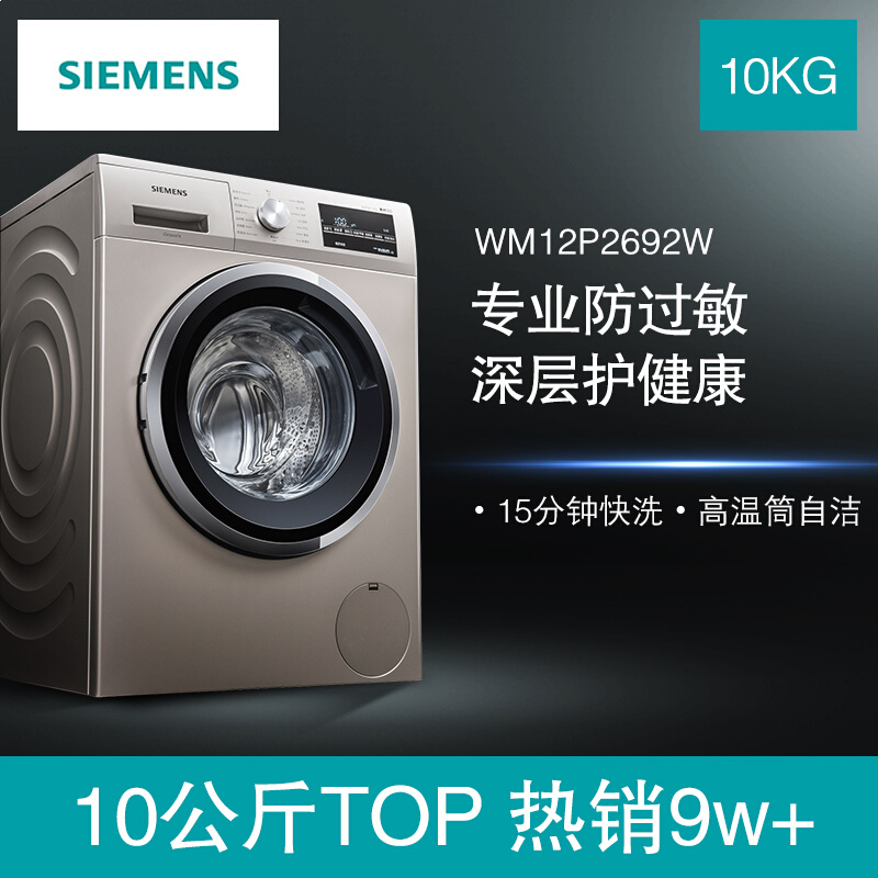 • 西门子(SIEMENS) 10公斤滚筒洗衣机 BLDC变频电机 15分钟快洗 混合洗 防过敏 XQG100-WM12P2692W