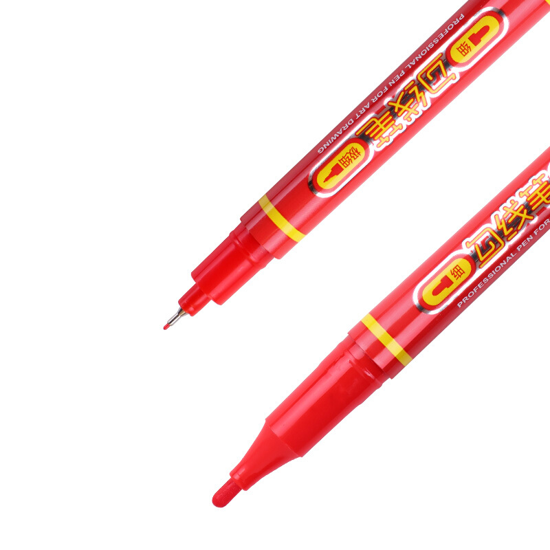 宝克(BAOKE)MP2906 小双头水性速干勾线笔 美术绘画勾线用笔 红色 12支/盒