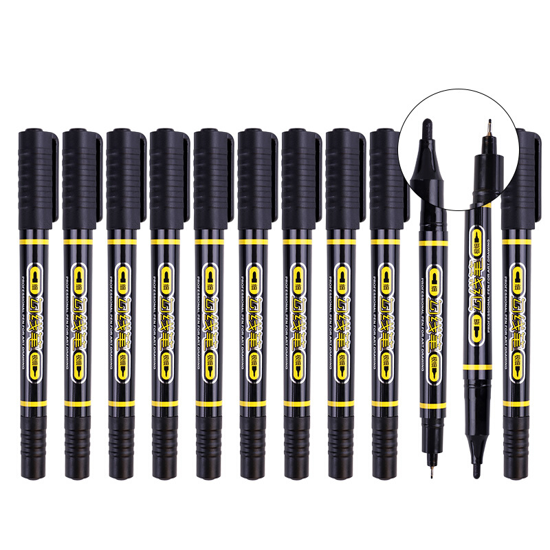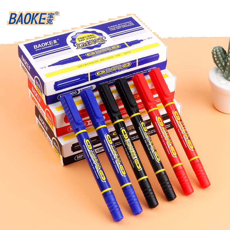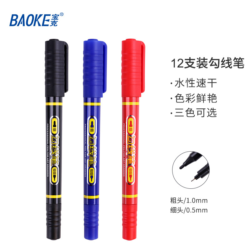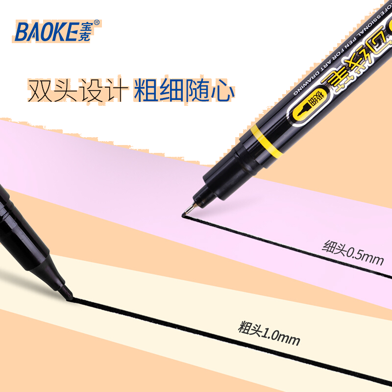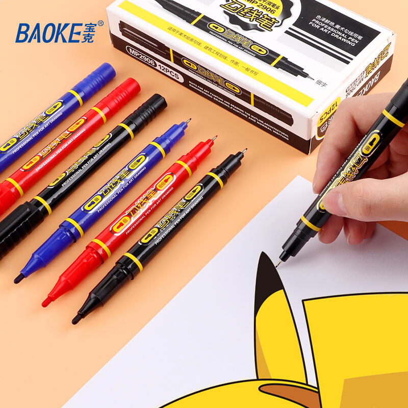 宝克(BAOKE)MP2906 小双头水性速干勾线笔 美术绘画勾线用笔 黑色 12支/盒