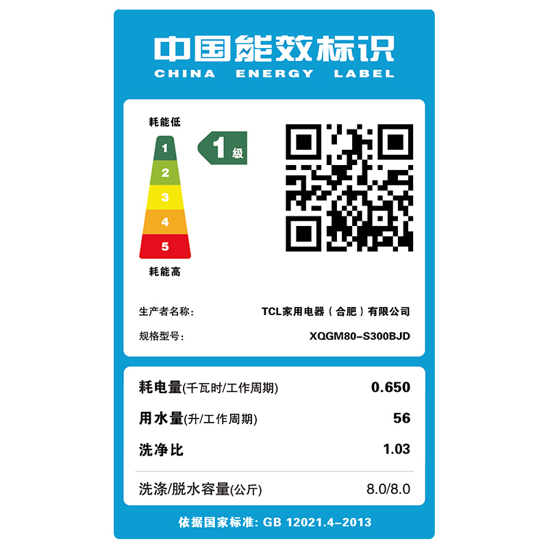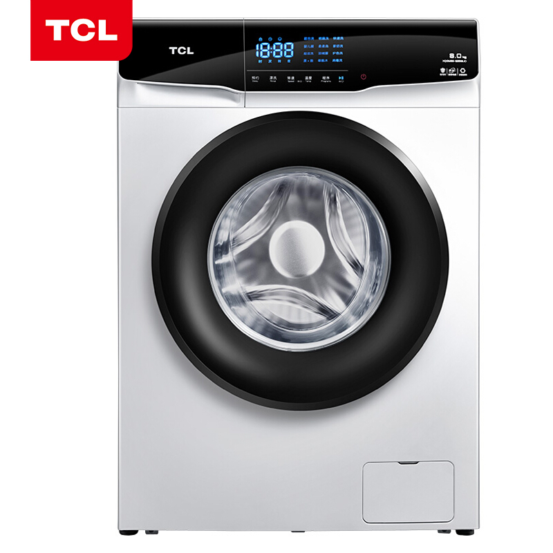 • TCL 8公斤 免污式免清洗变频全自动滚筒洗衣机 全面触控大屏 高温除菌除螨 皎月白 XQGM80-S300BJD