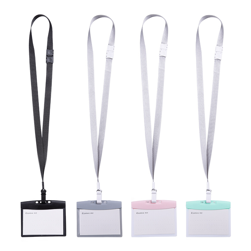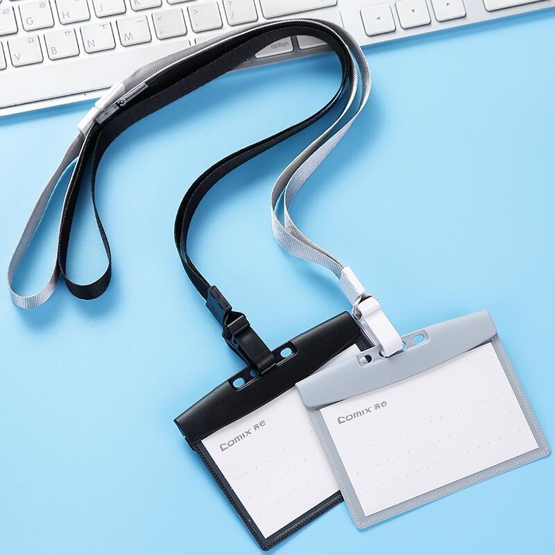 齐心(Comix) 横式工作证工牌挂绳套装证件卡套员工厂牌公交卡套 办公用品 灰 A7966
