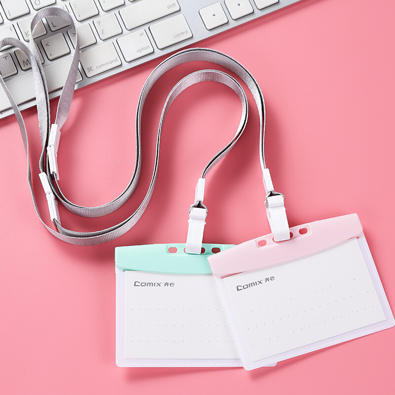 • 齐心A7966 横式工作证工牌挂绳套装证件卡套员工厂牌公交卡套 灰