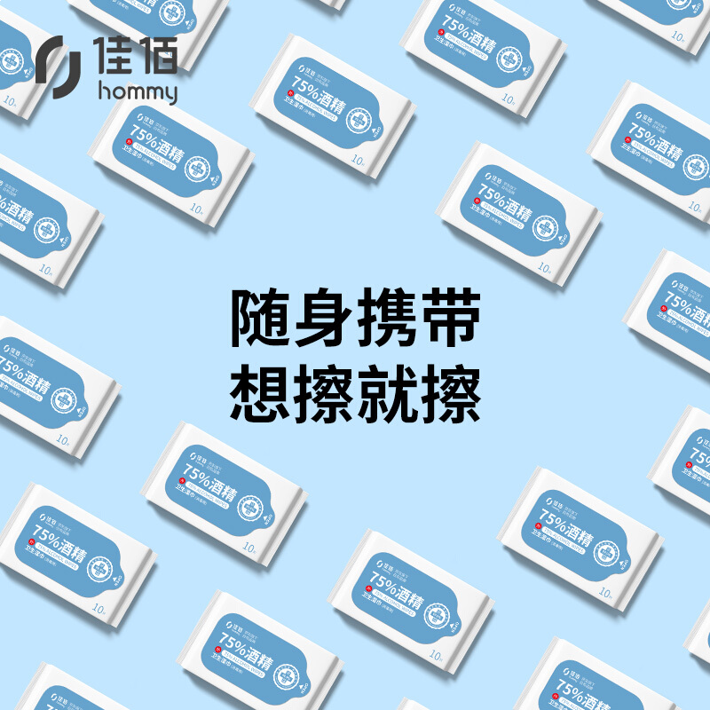 • 佳佰湿巾75%酒精消毒湿巾棉片 卫生湿纸巾一次性免洗手消毒液湿巾纸品 10抽*10包(量贩便携装)