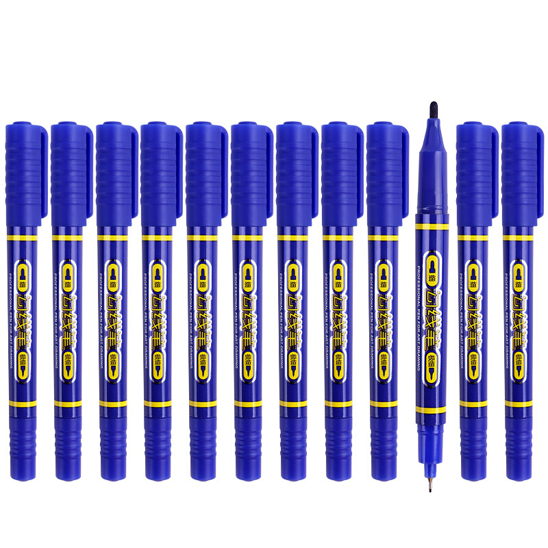 宝克(BAOKE)MP2906 小双头水性速干勾线笔 美术绘画勾线用笔 蓝色 12支/盒
