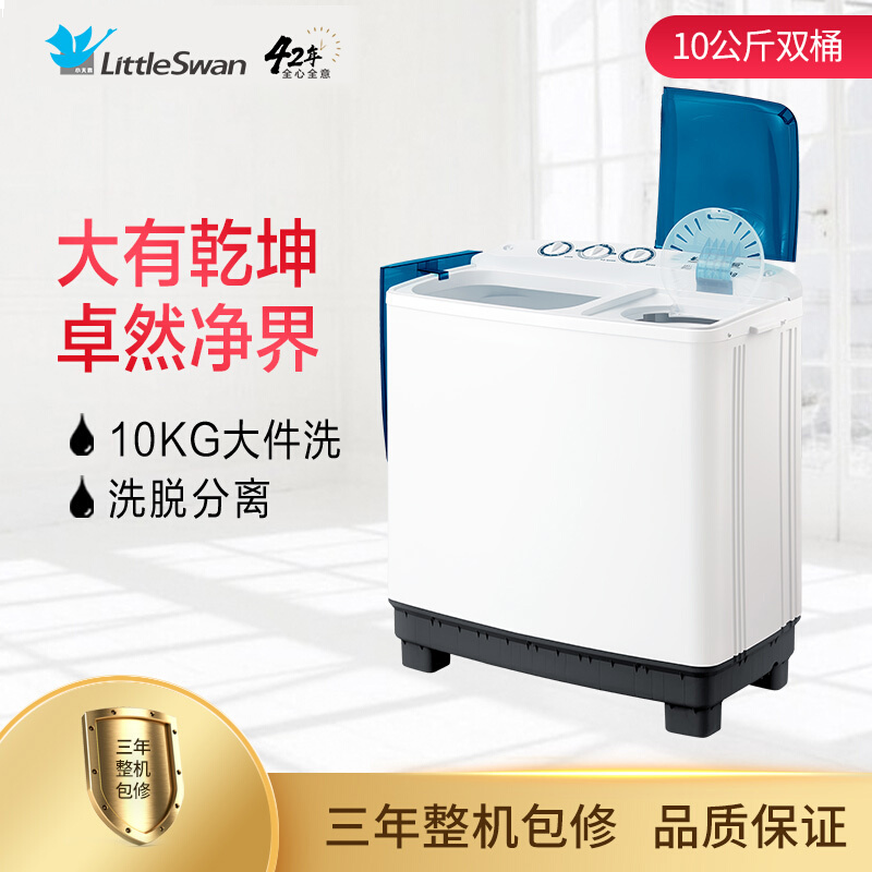 • 小天鹅 TP100VS908/10公斤 大容量 双桶双缸 洗衣机半自动 品牌电机 强劲动力
