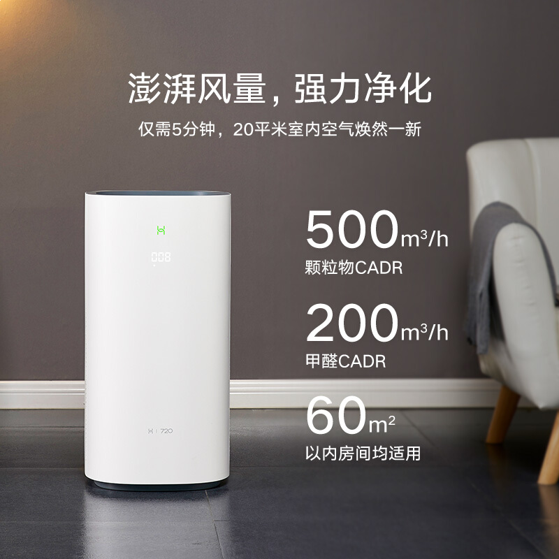 • 华为智选720全效空气净化器家用除甲醛 除雾霾PM2.5深紫外 负离子 杀菌 智能控制KJ500F-EP500H