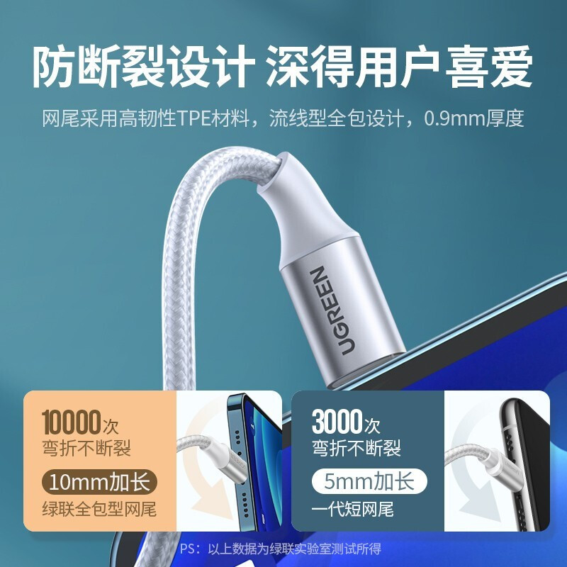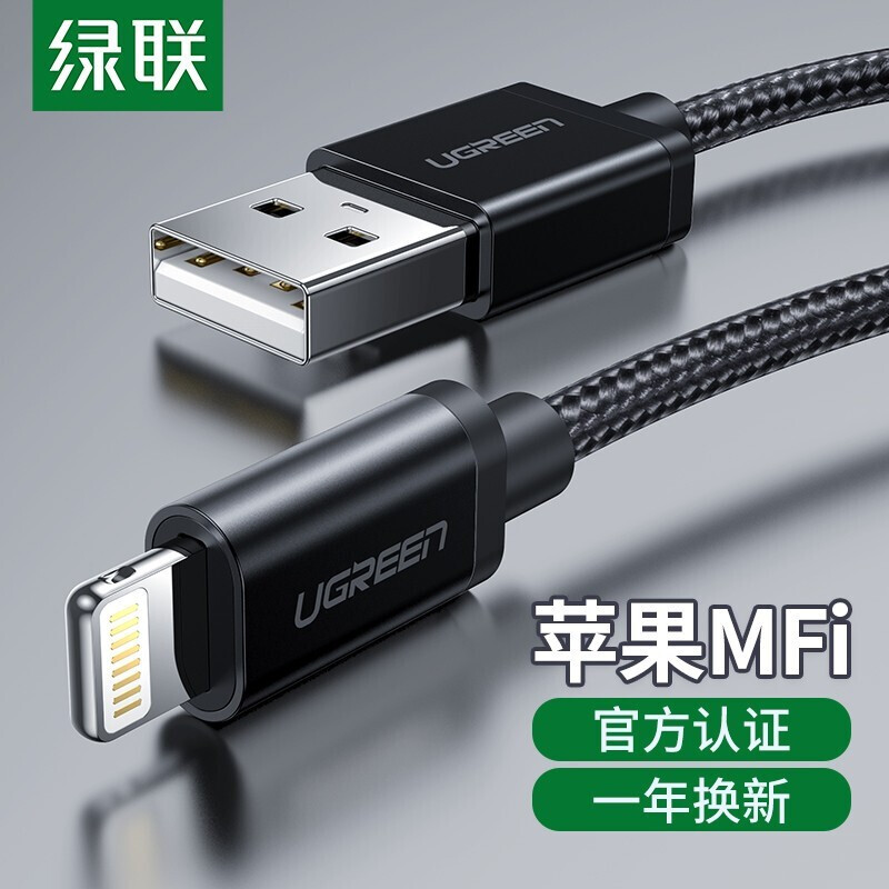 • 绿联苹果数据线MFi认证手机充电器线支持iPhone12Pro/11/XR/8快充USB电源线编织网 深邃黑 1米