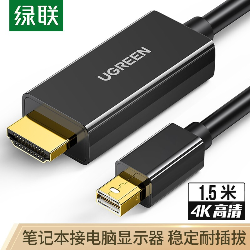 - 绿联(UGREEN)Mini DP转HDMI转换器线 雷电口高清4K视频线 适用苹果Mac微软Surface笔记本电脑 1.5米黑20848