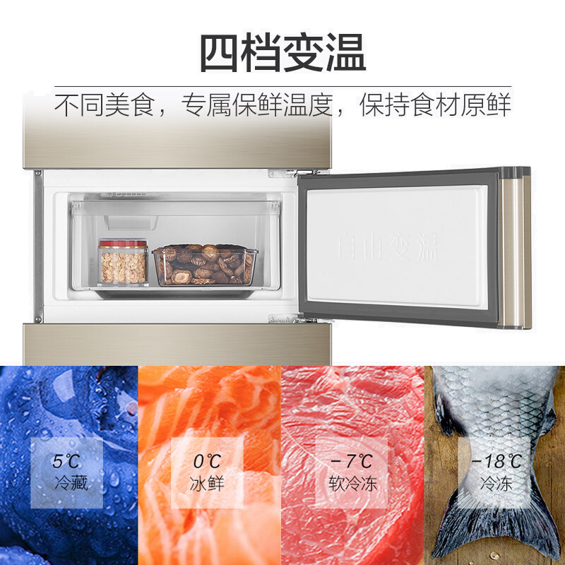• 海尔BCD-252WXPS/252升 风冷无霜三门冰箱中门全温区变温DEO净味系统 环保材质